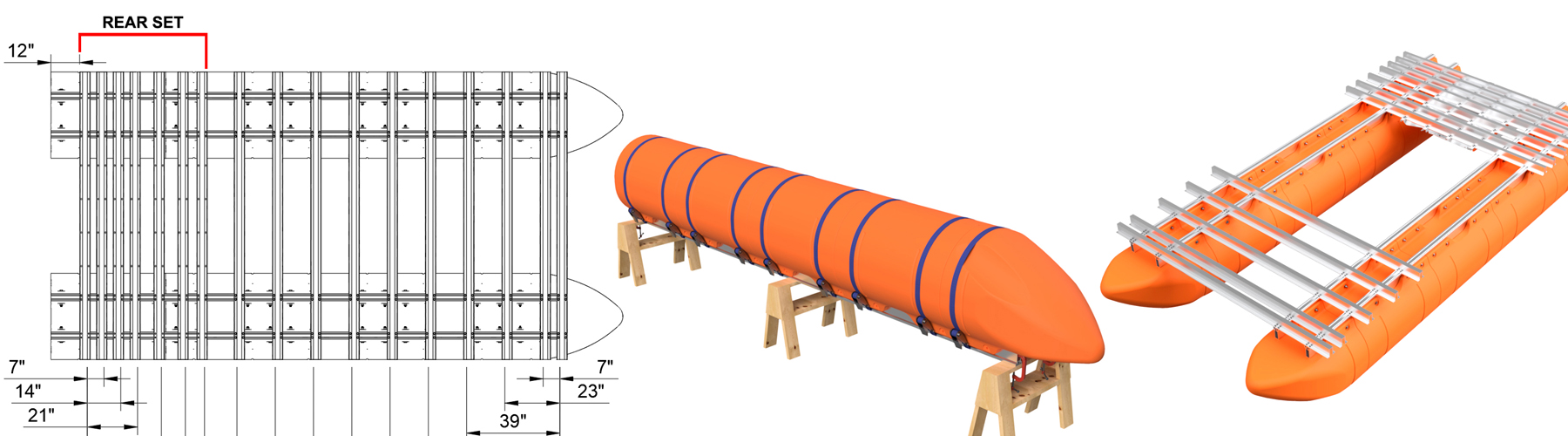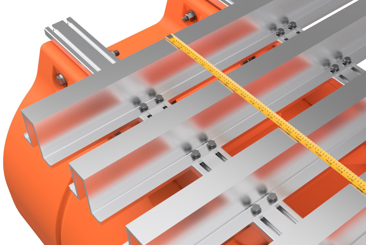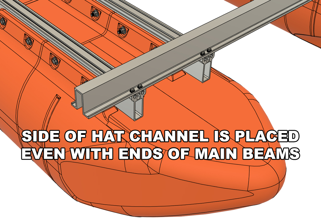 Moving forward, you will have to reference the crossmember placement diagram applicable to your specific barge kit. At this time, we do not have diagrams for every standard option on our site, but the applicable diagram will be provided after your purchase. If possible, print your required diagram or have it handy on a mobile device as you will need to reference it throughout the remaining assembly. The diagram is particularly important to follow if you purchased additional accessories designed to mount to specific crossmembers on your barge. Be careful and double-check all crossmember placement before fully tightening bolts from this point forward.