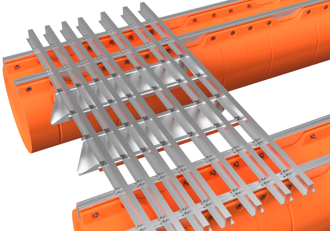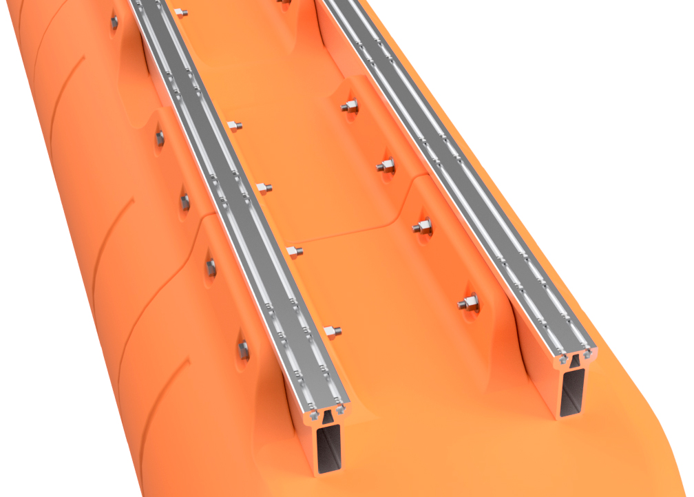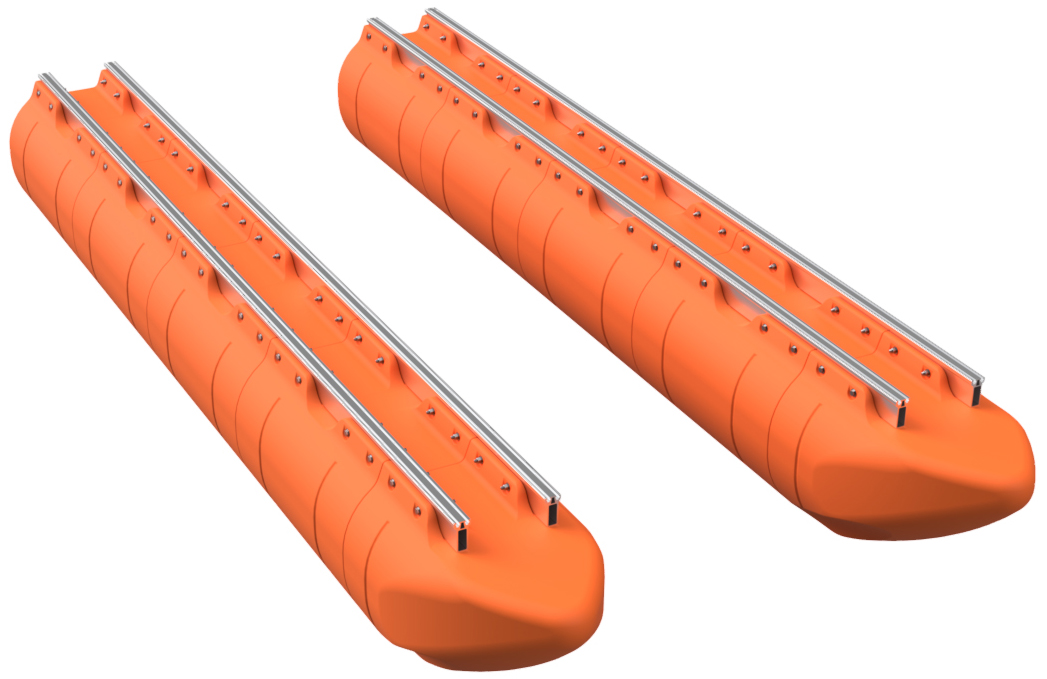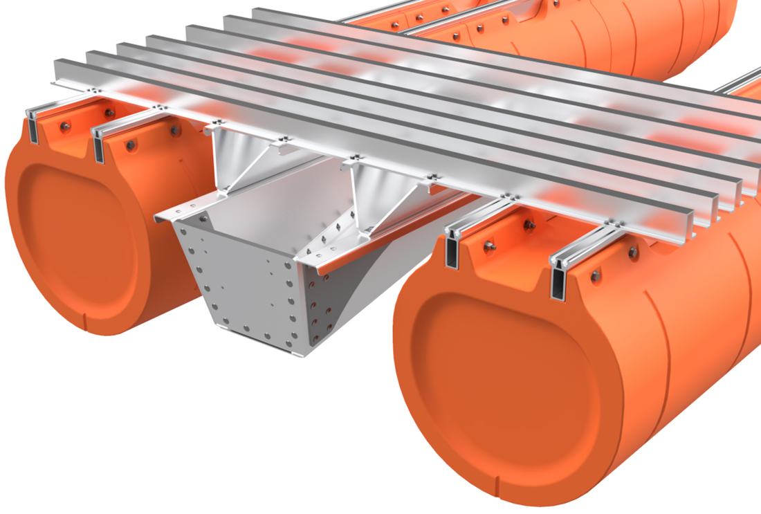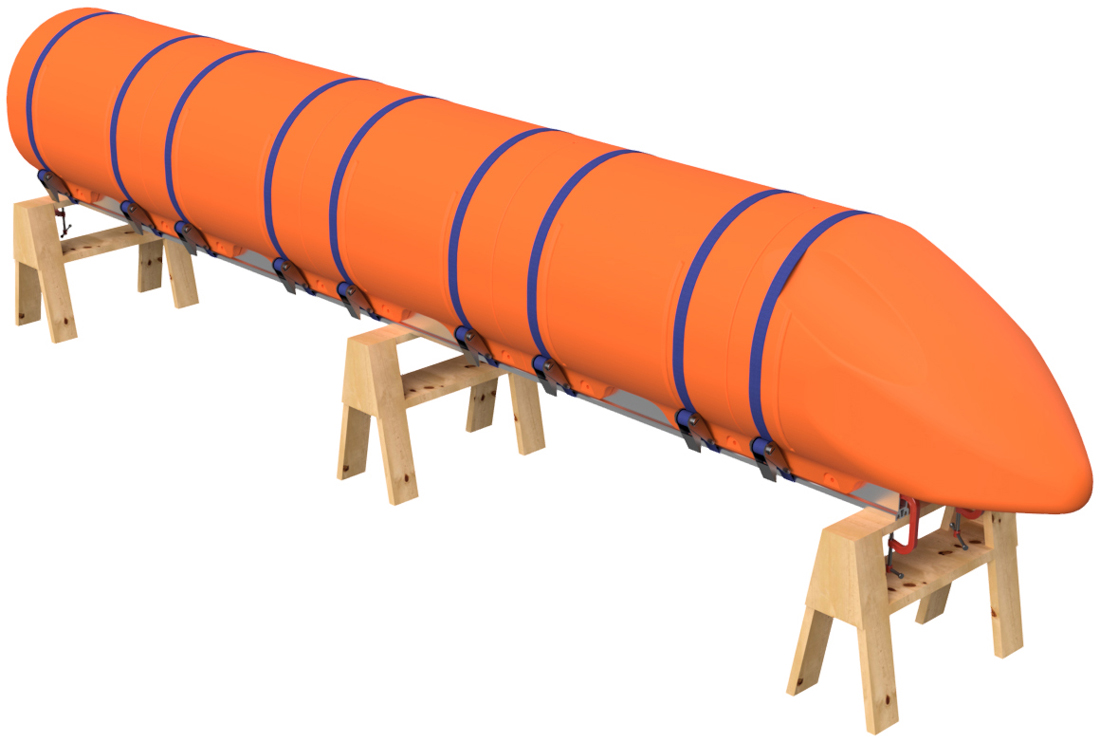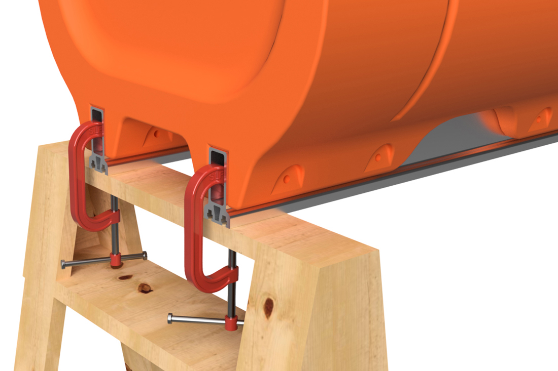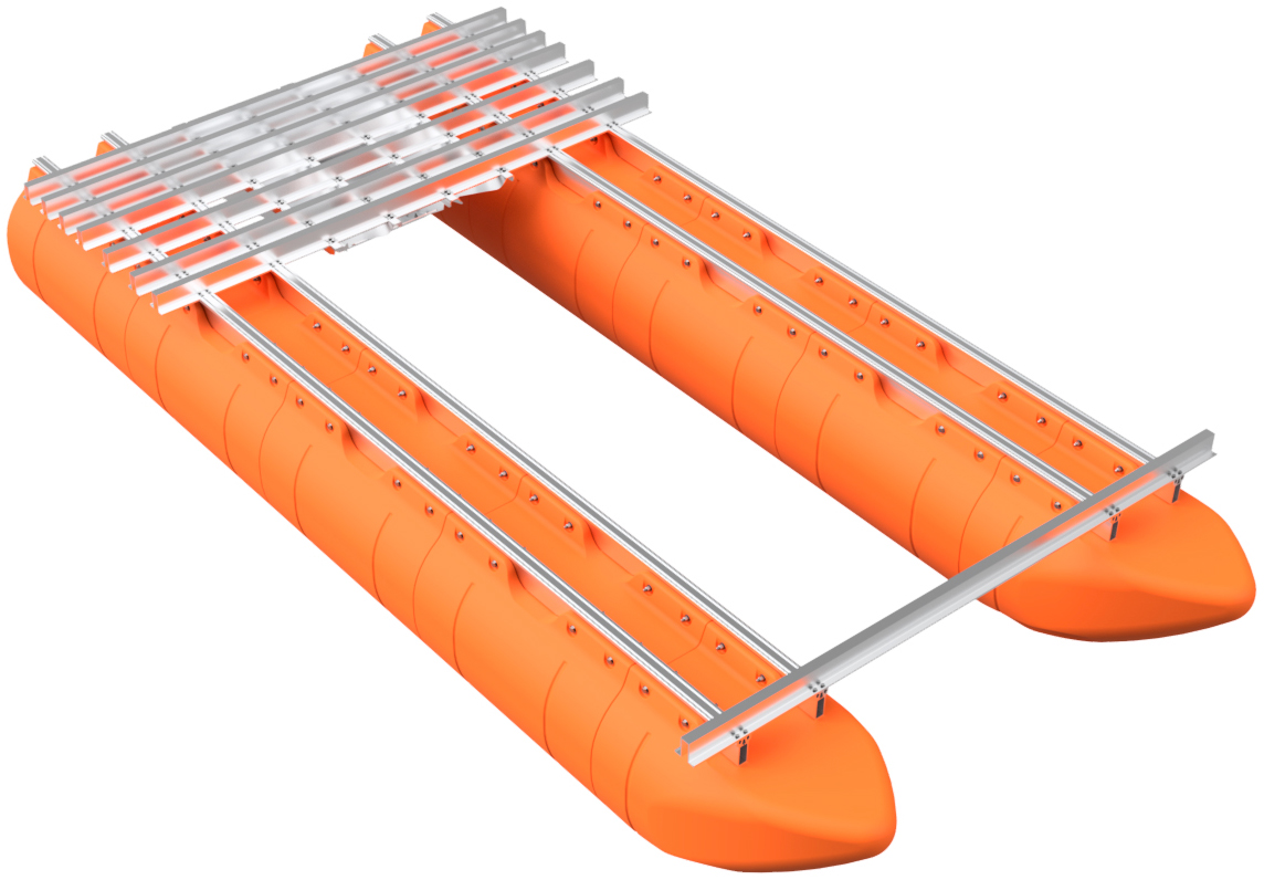 The pontoon and frame system assembly for our full aluminum frame large barge sytems with 36" floats is simple in concept and requires basic tools, a few specific tools, proper lifting equipment, and at least a 2-person team to complete safely. Even our shortest large barge system has pontoon assemblies that land at almost 700 pounds each, so this large-scale system requires a forklift or other lifting equipment to safely assemble pontoons and then move the completed vessel. Failure to be properly equipped for the task of assemby can cause risk of bodily harm, for which Tiny Pontoon Boats is not responsible. Don't underestimate the scale of what you are about to build! As our website states, you're building a Big Ass Pontoon Boat!